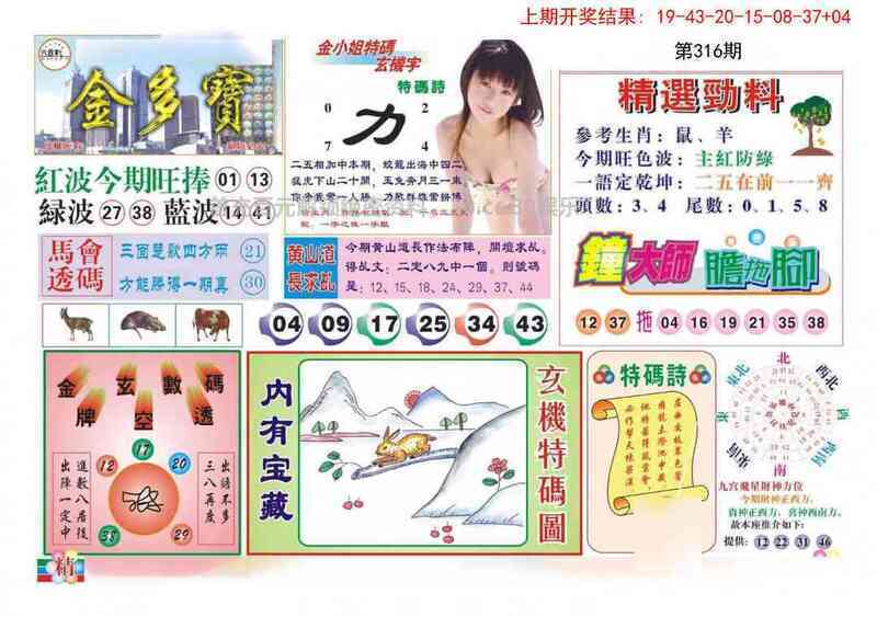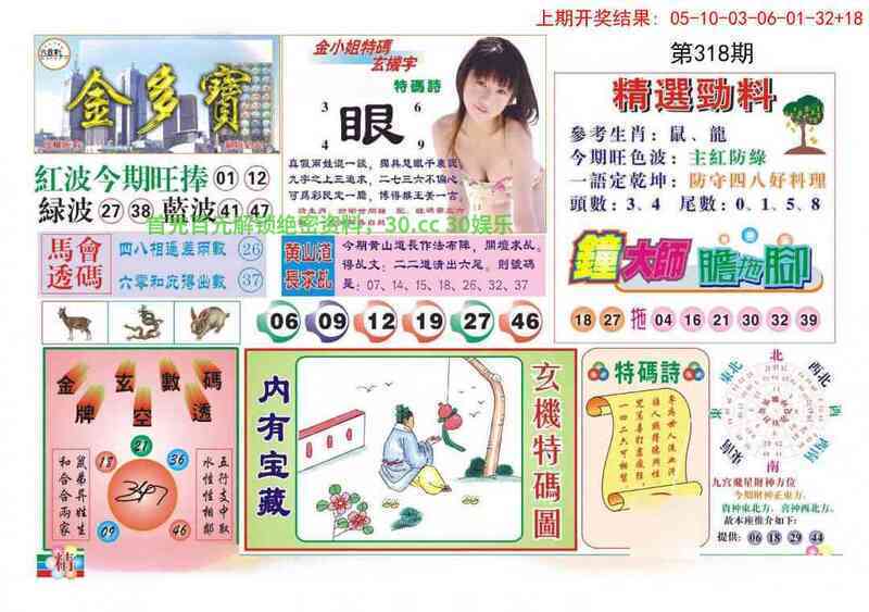 | 319期:金多宝 解:图中一语定乾坤可解福寿双全的生肖,牛兔猪鸡龙狗 综合:牛兔猪鸡龙狗 防特:09.45.14.26.08.44 |